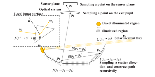 We build a physics-based model tailored to the challenging illumination conditions of permanently shadowed regions, integrating terrain geometry, orbital configuration, camera parameters, and environmental settings.